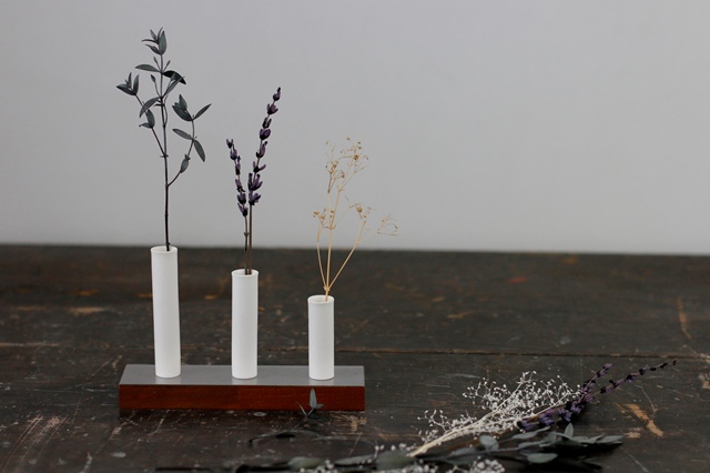 陶器の一輪挿しを30種類ほどつくっています。手のひらサイズから食卓や玄関にも映えるサイズまで、様々な色や形、大きさの花瓶をお持ちします。お庭で摘んだ小さなお花をぜひ飾って楽しんでください。