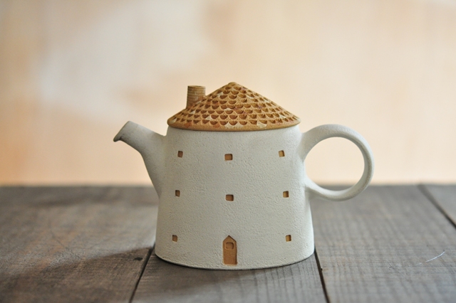 現代の暮らしに寄り添う日常使いの器を京都府綾部市にて家族で製作。和食でも洋食でも使用できる落ち着いた色合いの器や、本物の家と同じ素材を使用した、家をモチーフにしたカップやポットが並びます。