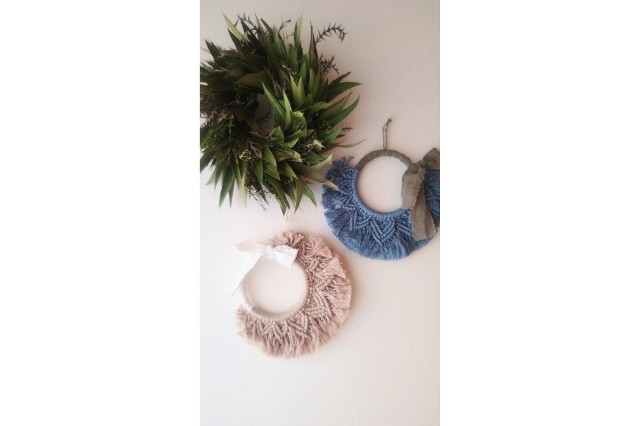 “自然素材とともに楽しむ優しい暮らし”をコンセプトに、オーガニックコットンの糸でマクラメ雑貨を編み上げています。季節の花や緑を暮らしに取り入れやすくアレンジした、リースやスワッグも並びます。