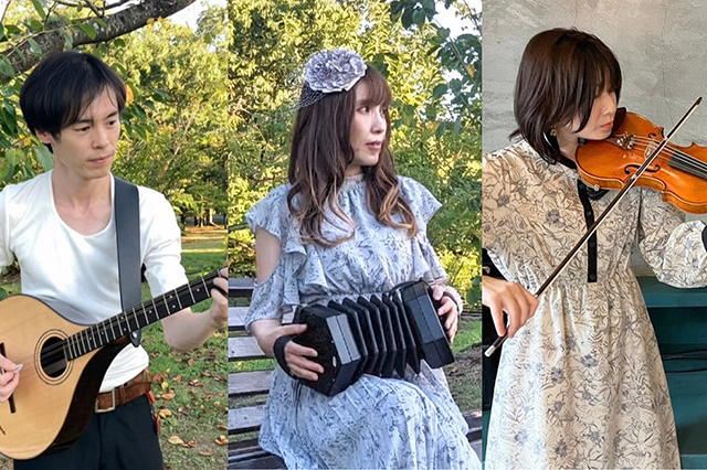 コンサーティーナ、ブズーキ、フィドルの3種類の楽器でアイルランド音楽を演奏するインストバンド。「聴いて心躍る音楽を、笑顔の生まれる音楽を」。アイルランドへのプチトリップの時間をお届け。