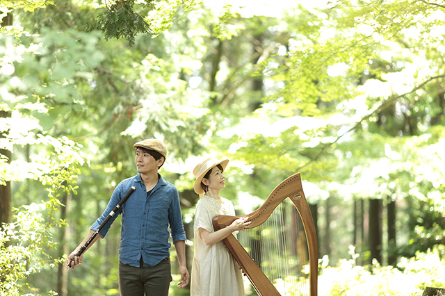 笛奏者・hataoと、ハープやピアノ、リードオルガンを奏でるnamiによるデュオ。ケルトや北欧の伝承曲を題材に、民族楽器のぬくもりある音色でオリジナル音楽を紡ぎ出します。